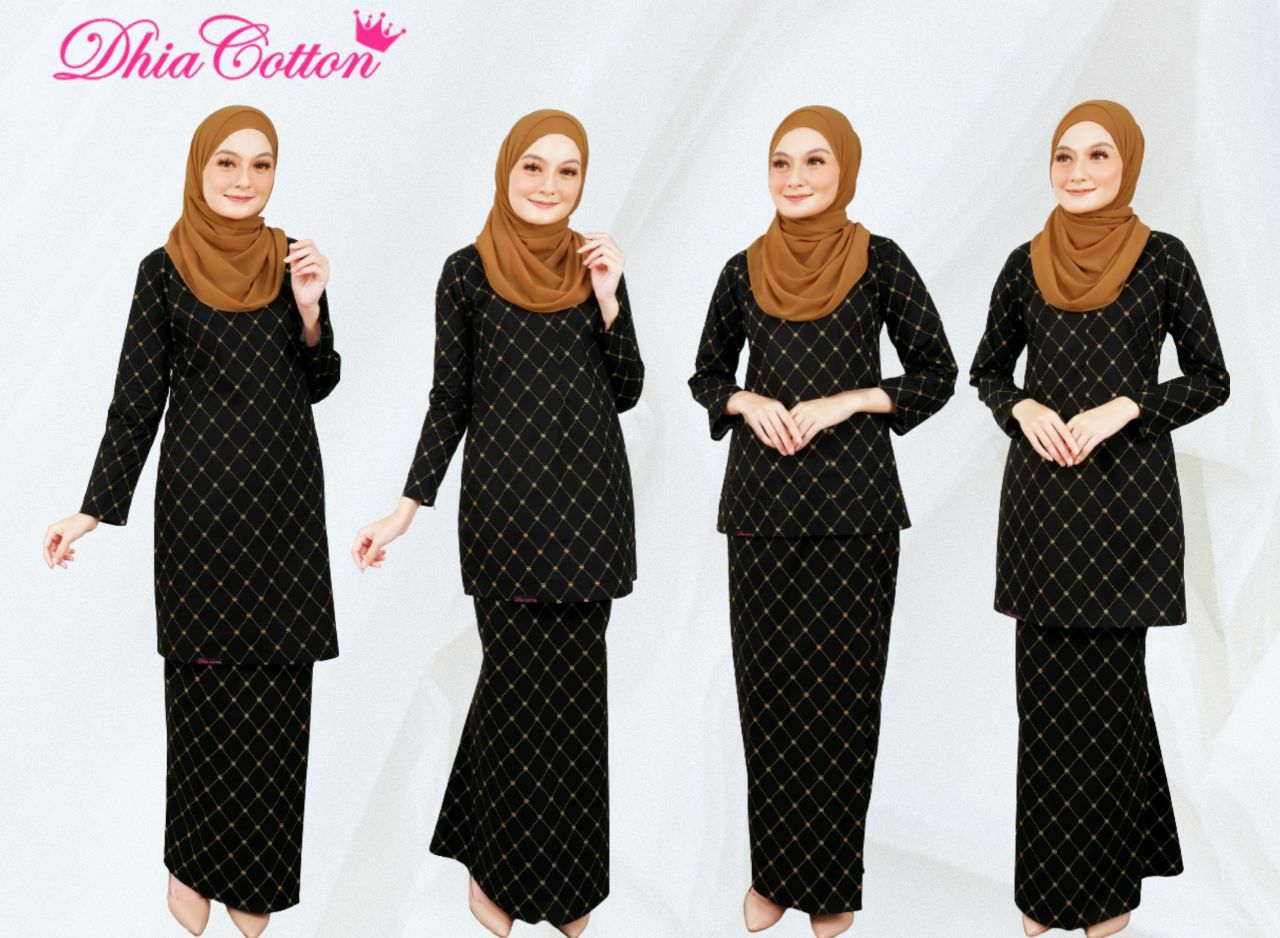 Baju Kurung Pahang Gold Line Radwa Matte Black Kualiti Designer Harga Luarbiasa